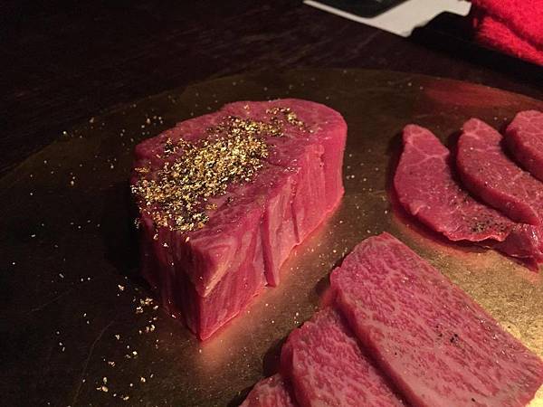 分別是 ザブトン、ハラミ 、亀の子、芯々(特上あか身)、友三角以及 シャトーブリアン(滿滿金箔的那塊)